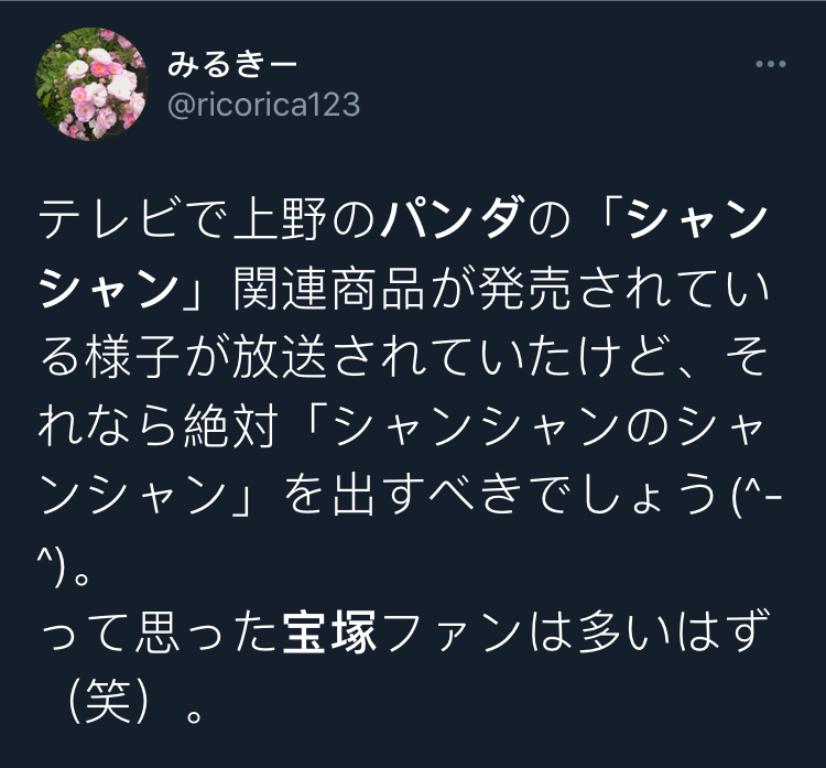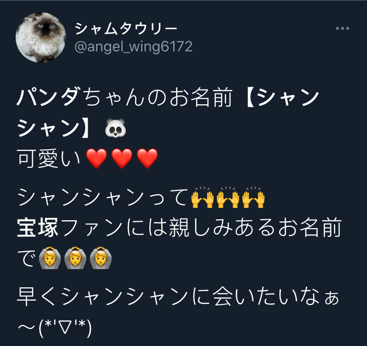 香香的日文是「シャンシャン」,在刚被宣布的时候,不少的宝塚粉丝都乐坏了: