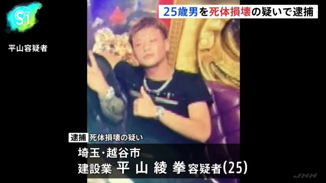 4月16日,东京都内的公司老板宝島龍太郎以及妻子烧焦的尸体在栃木县那须町内被发现。在警视厅和栃木县警察局的共同搜查下,最终将在埼玉县越谷市建筑业工作的犯罪嫌疑人平山綾拳(25)以烧毁遗体的罪名送往检查厅。