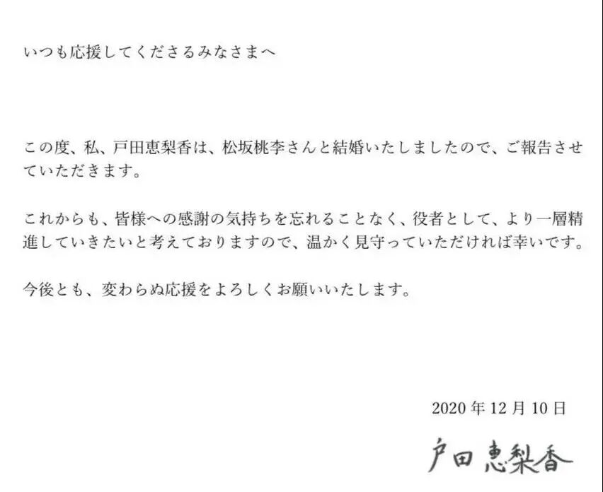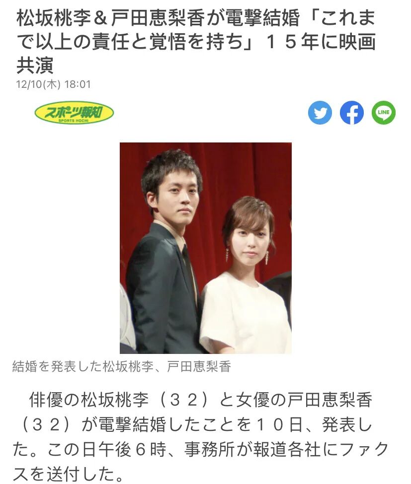 戸田恵梨香&松坂桃李官宣结婚,这条消息立刻就刷遍了日本和中国的各大媒体平台热搜榜!