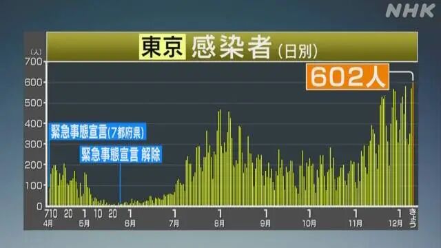 进入12月以后的日本疫情简直让人揪心,多次创单日新增人数新高,就在12月10日,日本东京单日新增确诊人数602,也是第一次超出了600人。