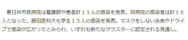 而就在这个节骨眼上,日本依旧发生多起因为聚餐、郊游引起的聚集性传播事件。其中就有爱知县藤田医科大学的学生们。