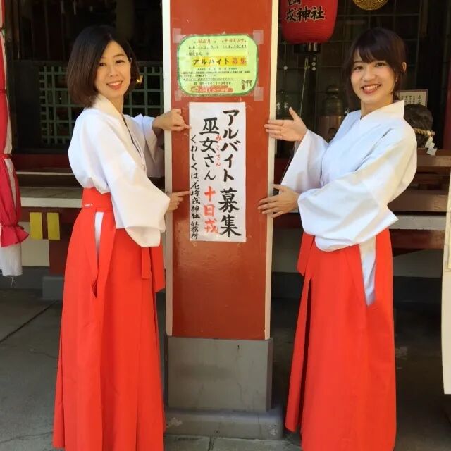 新的一年第一次去神社又叫做初詣(はつもうで),一般在1月1日到7日左右有名的神社都会很忙,所以临近年末的时候日本各大神社就会:招募巫女