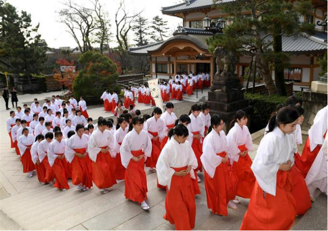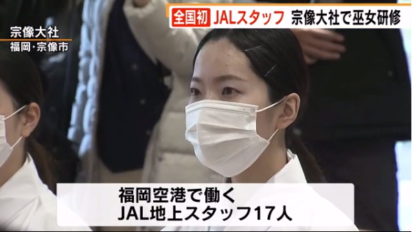 为了缓解这一问题,JAL(日本航空)21日起派出福冈机场工作的员工,前往福冈宗像大社研修如何做巫女,为1月1日~11日的巫女工作做准备。