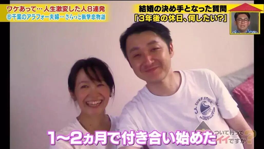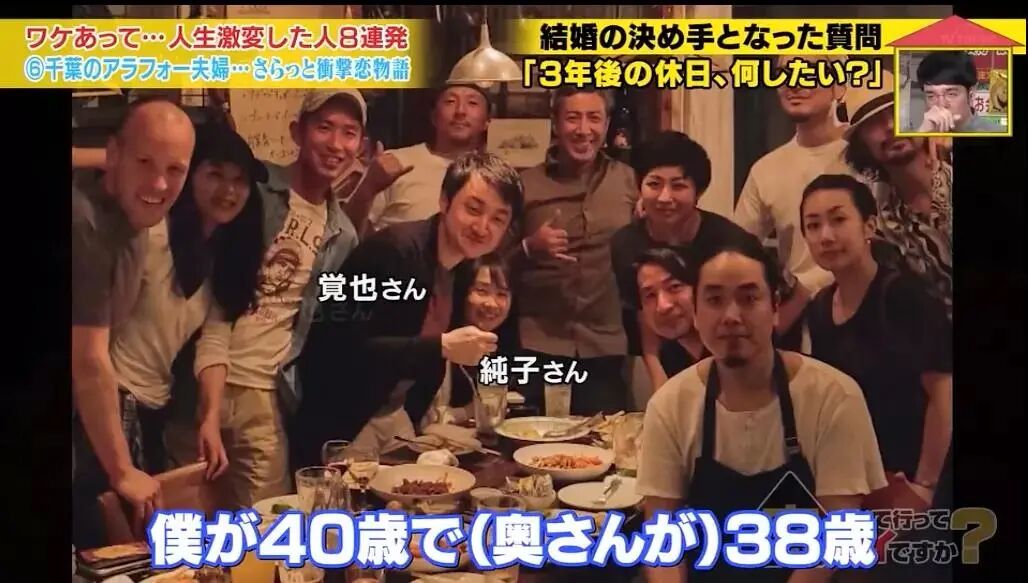 于是,在纯子38岁、觉也40岁那年,他们在同学会上知道了彼此都是单身。纯子开玩笑的一句“觉也帮我介绍男朋友吧”,以及觉也半真半假的“好像只有我了”拉开了二人的恋爱序幕。