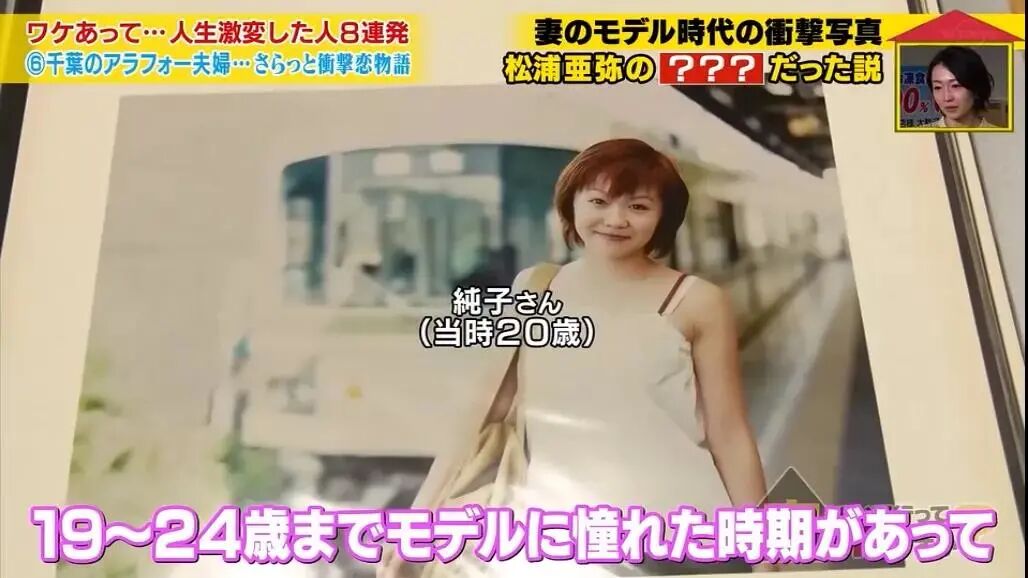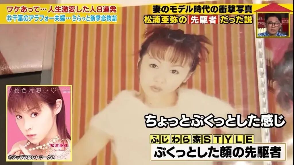 保养得很好的纯子,年轻的时候更是个大美人。还曾经上过美容类杂志广告,神似当年正火的松浦亚弥。