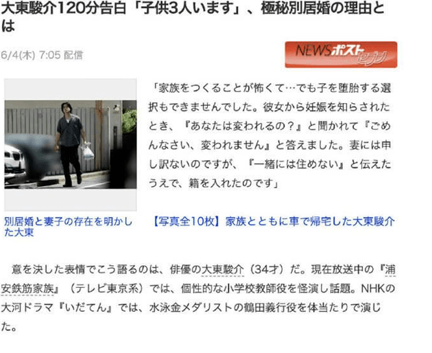 隐婚还有三个孩子的大东骏介,竟然夫妻不住在一起,也不一起抚养孩子。还隐瞒已婚身份与其他女性交往!