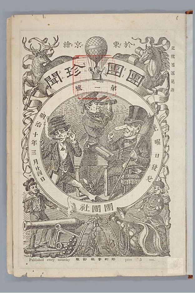 法国人乔鲁吉·毕戈于1882年来到日本,旅日期间出版了三册以日本为主题的铜版画集。1885年发行《团团珍闻》,1887年发行了《TOBAE》讽刺画集及杂志,这两位海外漫画家对于日本漫画的革新有很大的贡献。