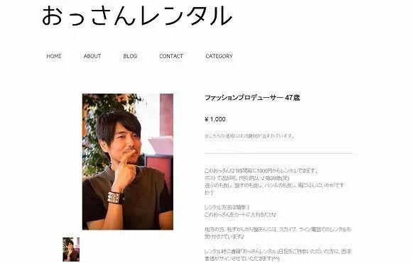租用大叔的第一步是上到大叔出租网站。这次租借的是高本信,是一位现年47岁的时装设计师。他曾在日本和美国的各个地方工作,从百货公司到一家大型发型师公司的总监,甚至还曾经撰写过女性关系咨询的专栏。