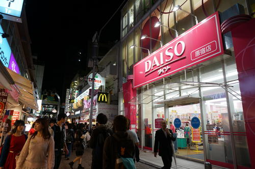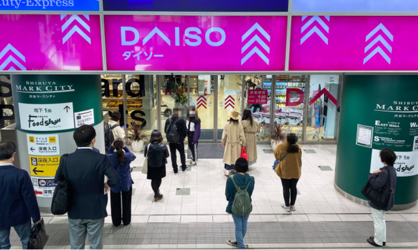 从涩谷站走出来,很容易就能看到Daiso死亡芭比粉的品牌名。9:30开门前已经看到大家跃跃一试地排着长队。