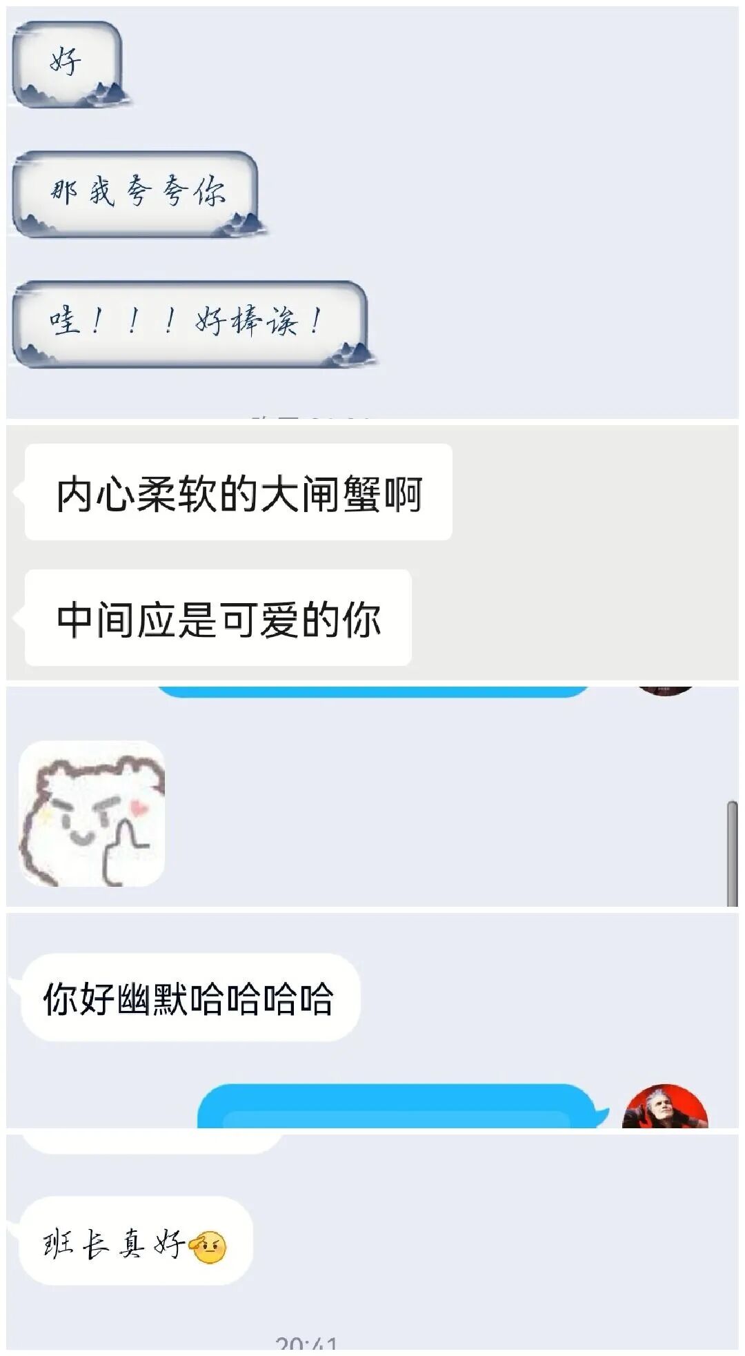 【路人】蛤蟆 2022/5/13 21:07:33#最近一次被夸#今天突击检查甜玉米夸我限时作答,把他吓出了一身汗肉眼可见的满头大汗【大侠】蟹黄堡 2022/5/13 21:06:45#最近一次被夸#你是个好人,我们不合适柳林碗托 2022/5/13 21:02:53#最近一次被夸#中午和妈妈打电话,妈妈说从小到大我在她心里永远是最漂亮的那一个( ج_ج )大闸蟹 2022/5/13 20:48:24#最近一次被夸#