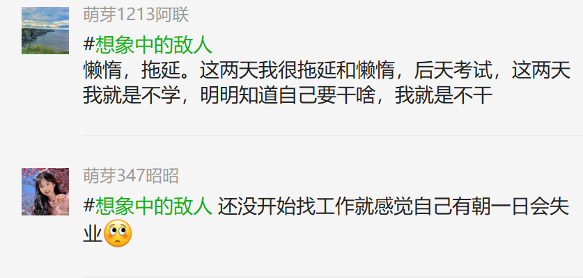 我们总是在自己想要行动之前,给它设定一些“敌人”,这些敌人有些源自于自己,觉得自己做不到、没能力、没信心、没有行动力和抗压抗挫折能力,有些源自于外界,觉得没有空间,没有时间,没有资源...