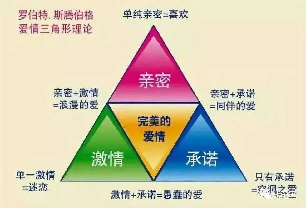 3、“承诺”是爱情第三元素,大家都知道三角形的构造最为稳定。短期的承诺比如发圈官宣自己脱单了,向全世界宣告自己恋爱了,长期的承诺就是成熟一点的决定,慎重的考虑未来,走入一段长久的恋爱关系。