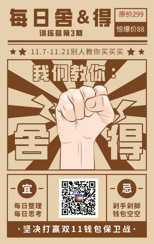 好的你看到了,今天是一个广告贴,哈哈哈,我和青岛的整理师轻松姐、晓禾老师一起联合发起的每日舍&得的整理训练营,即将开始第3期的旅程了,无论你想整理有形的世界,还是无形的信息,都欢迎你加入进来,同样的,我们的训练营也不是单纯让你扔东西,可以用循环的办法,二手转让的办法,让物品物尽其用,可以更好的实现物品本身的价值,第三期,精彩依然继续: