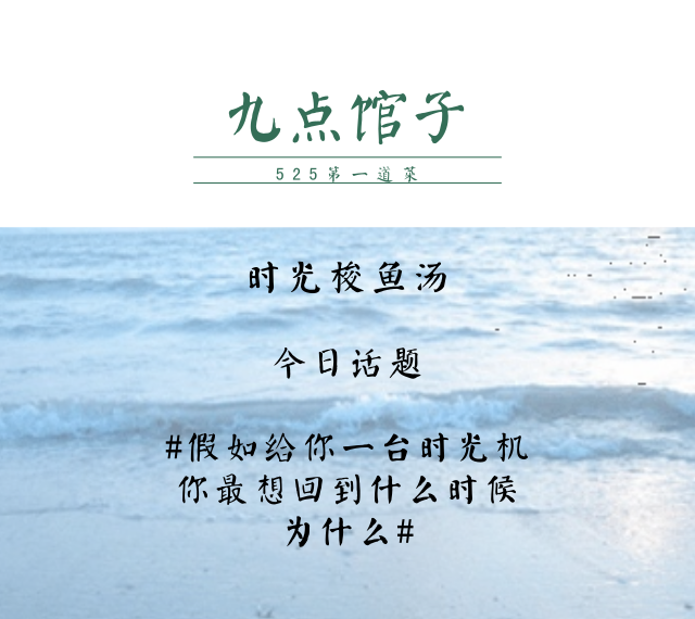 今夜话题,今夜菜:时光梭鱼汤(特别说明:在整理文档的时候,起初我想复制一下,所有聊天记录,然后保留话题相关内容,就在我复制粘贴到180321个字符的时候,我缴械投降了,于是用了个最快捷的方法:在消息记录里搜索关键字:“时光机”,于是复制以下文本内容,所以没有在聊天记录里粘贴#假如给你一台时光机,你最想回到什么时候,为什么#的小伙伴,内容可能被略过。。。从另一个角度看,大家聊的火热啊,翻聊天记录会翻到上个世纪啊。。。哈哈哈哈)