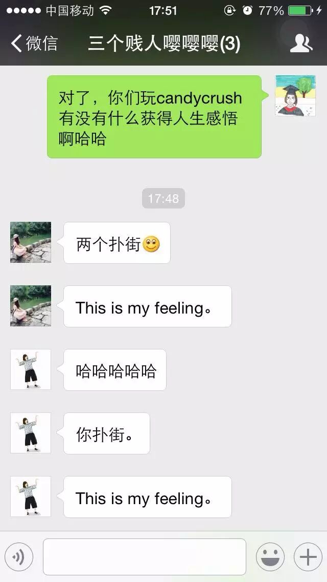 我第一次接触candycrush应该是大二的时候跟包子去看管弦乐团演出,她带我玩的,到后面我们俩都玩很嗨哈哈,而那时还只是单机版。到后来去了台湾便连上了FB于是又玩了一轮。再到不知道什么时候它进军了微信游戏,于是它变成了很大部分时间中我手机里唯一的游戏。