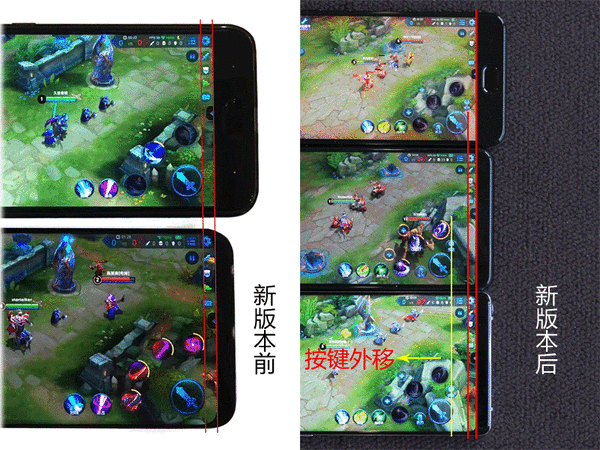 如果是此前还没适配全面屏手机的版本,而你恰好又用全面屏手机,那么我们是推荐使用这种产品的,因为当时全面屏手机显示的“平A”和技能按键太靠边缘(如上图所示),使用手柄会更舒服。不过,现在《王者荣耀》已经适配全面屏手机,调整了“平A”和技能按键的位置,因此这种手柄就没什么用武之地了。