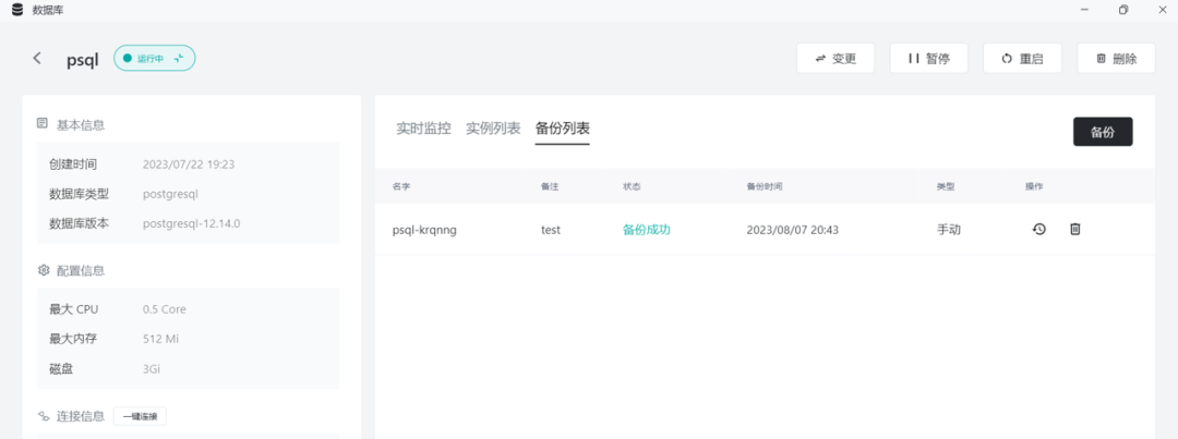 进入详情页面,你可以查看数据库的详细信息,并通过一键连接功能与数据库进行交互。这让操作变得更加便捷,让你与数据库之间的互动更加高效。