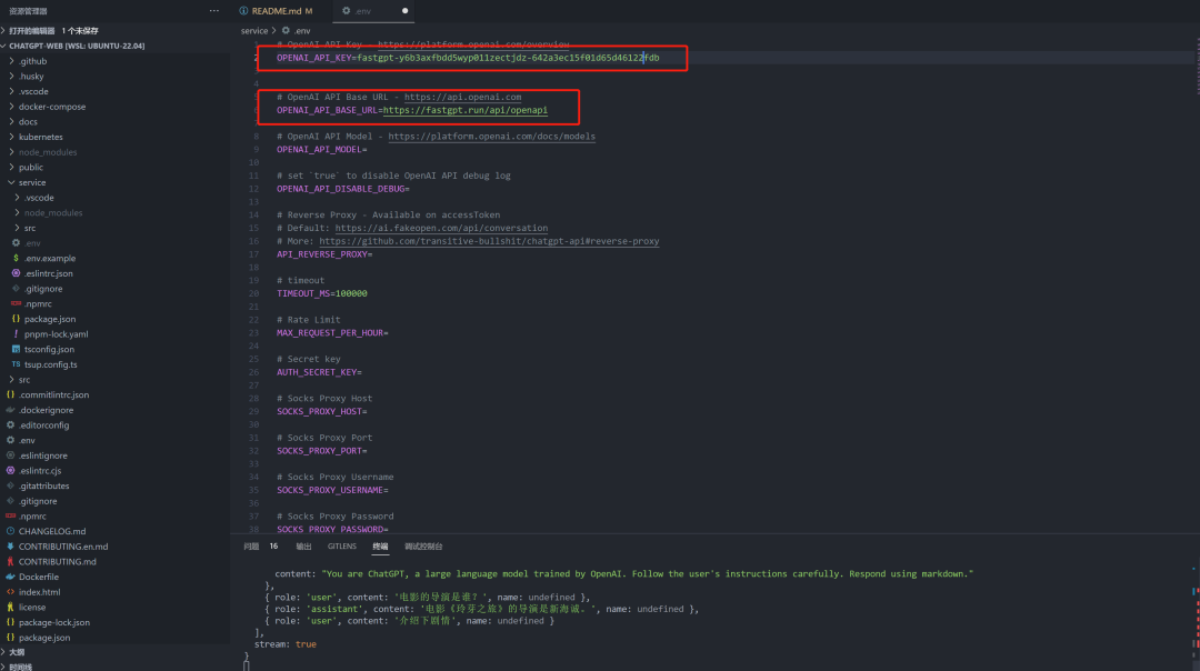 OPENAI_API_BASE_URL: https://fastgpt.run/api/openapi (改成自己部署的域名)OPENAI_API_KEY = 组合秘钥