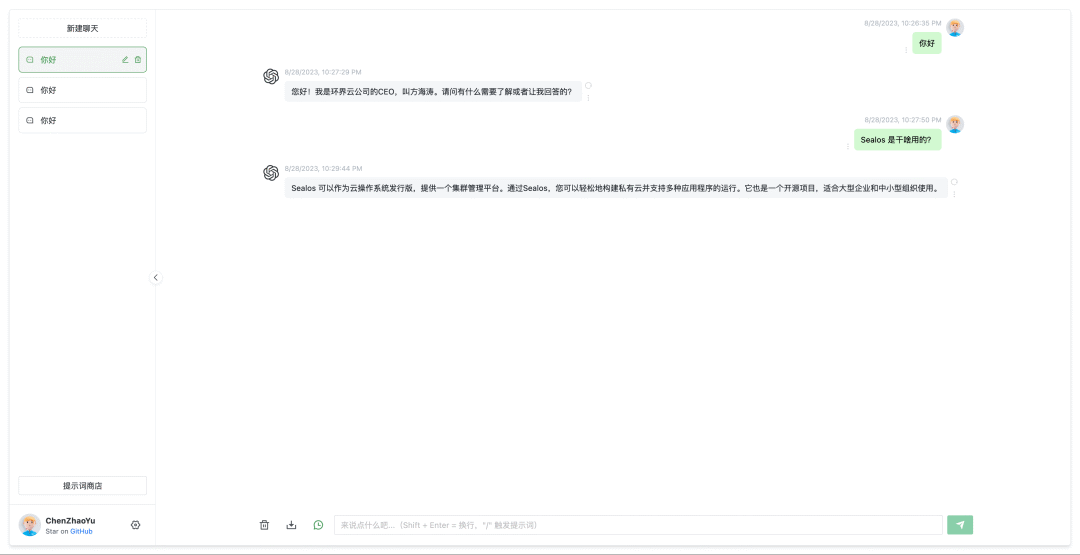 值得一提的是,它还支持通过 API 来进行调用,同时还提供插件对齐 OpenAI 的 API,你可以将其接入任意套壳 GPT 应用中。