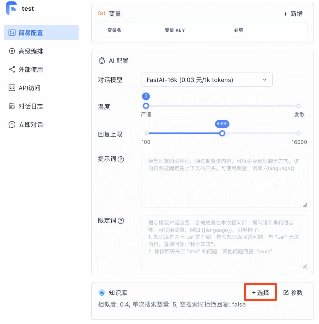 训练好知识库后,需要到你的「应用」中关联你的知识库: