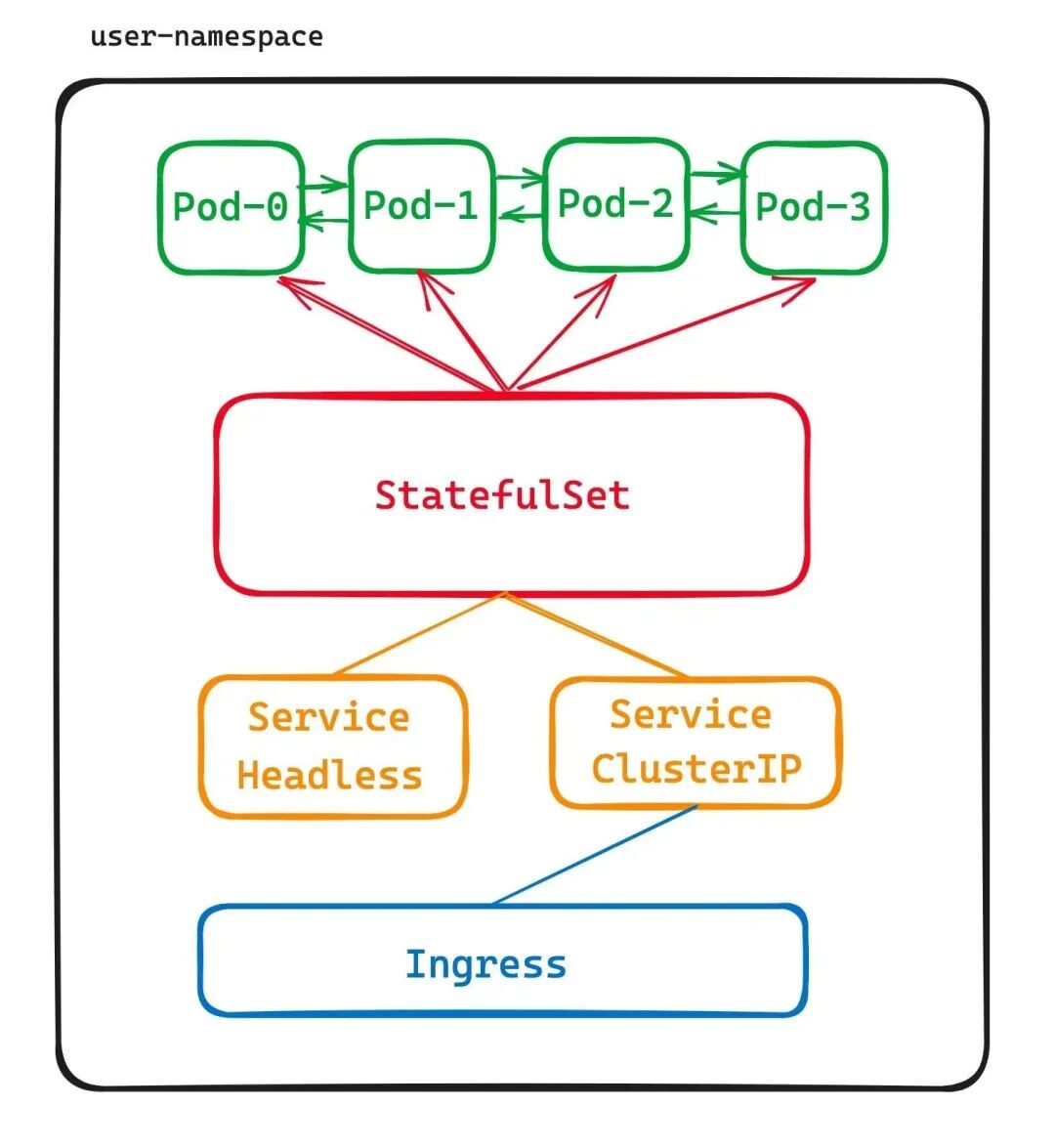 Service(Headless):为 StatefulSet 内的 MinIO Pod 提供内部服务发现,其他 Pod 可以通过固定的 DNS 名字访问每个 MinIO 实例。