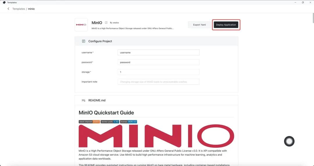 点击链接 https://cloud.sealos.top/?openapp=system-fastdeploy%3FtemplateName%3Dminio