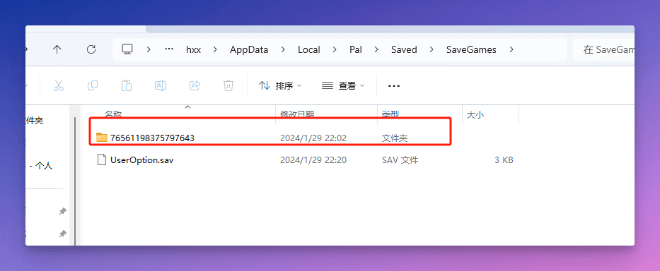 file_path : 本地的存档路径,在 C:\Users\用户名\AppData\Local\Pal\Saved\SaveGamese 中。这个就是我们的存档文件夹了,点进去: