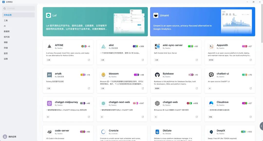 Sealos[2] 是一款以 Kubernetes 为内核的云操作系统发行版,你可以像使用个人电脑一样在 Sealos 上一键安装任意高可用分布式应用,几乎不需要任何专业的交付和运维成本。