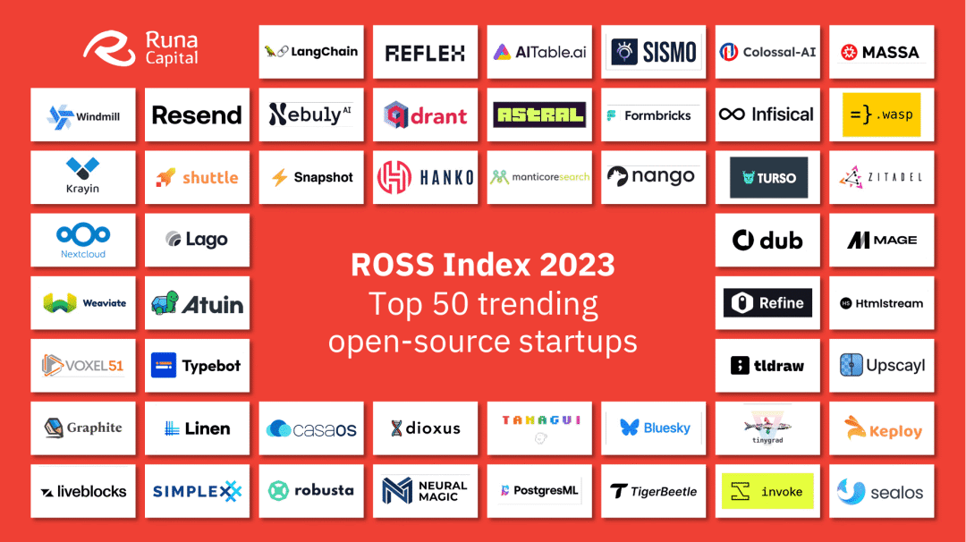 2023 年增长最快的 50 家开源创业公司: https://runacap.com/ross-index/annual-2023/[2]