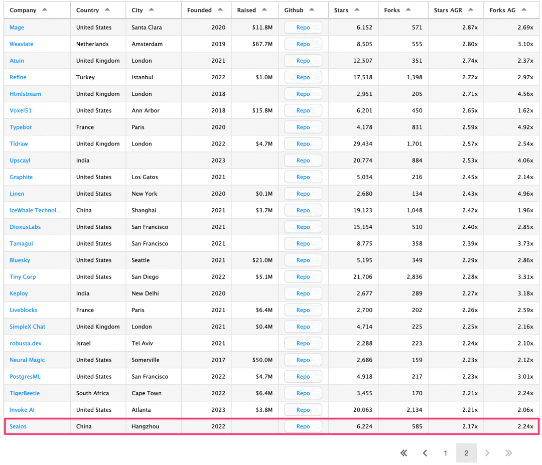 今年,Runa Capital (鲁纳资本) 评选出了 2023 年增长最快的 50 家开源创业公司[1],Sealos 压轴登场,总共有两家中国公司上榜,Sealos 排名第二。