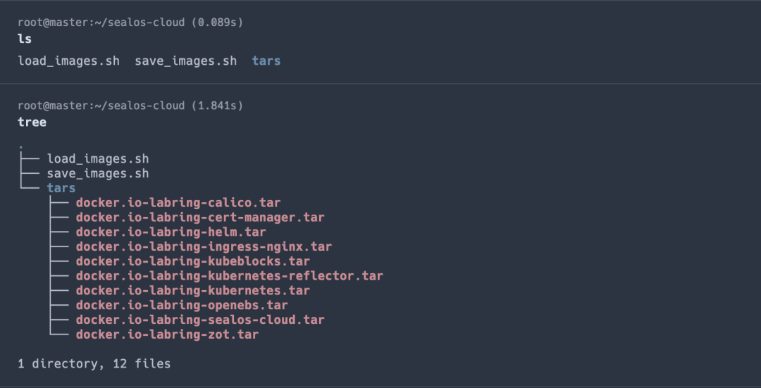 执行完这个脚本后,会在当前目录下生成一个 tars 目录,里面包含了所有的镜像文件。