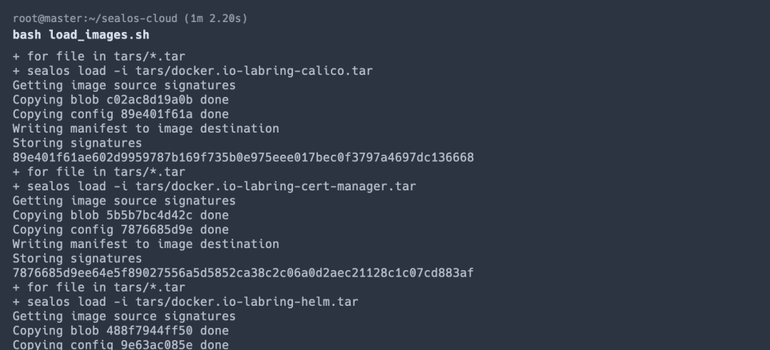 #!/bin/bash# load_images.shset -exfor file in tars/*.tar; do sealos load -i "$file"done