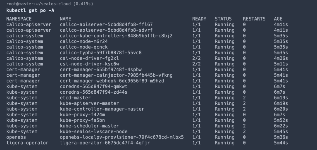 等待集群就绪后 , 使用 kubectl get pods -A 查看集群状态: