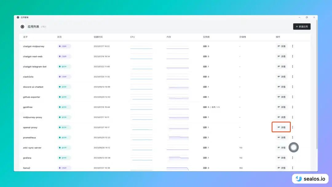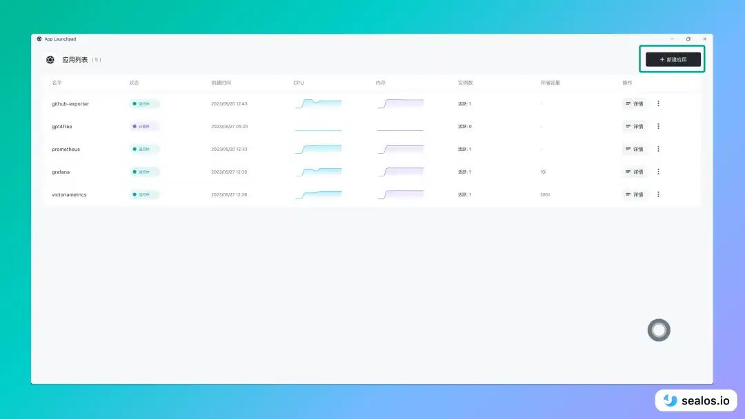 然后在 Sealos 桌面环境中打开「应用管理」: