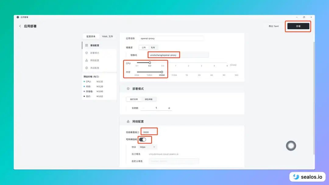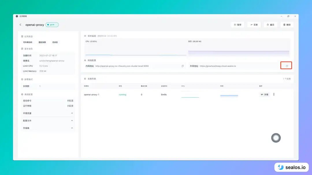 部署 openai-proxy 需要考虑到魔法因素,如果您想在本地使用 Docker 部署,需要确保您的容器开启了魔法。如果想省心,可以选择直接使用 Sealos 部署,无需操心魔法。