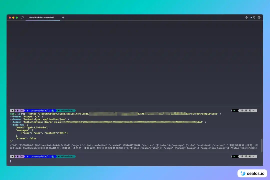 $ curl -X POST '<PROXY_URL>/claude/<organization_uuid>/<conversation_uuid>/v1/chat/completions' \--header 'Accept: */*' \--header 'Content-Type: application/json' \--header 'Authorization: Bearer <KEY>' \--data-raw '{ "model":"gpt-3.5-turbo", "messages": [ {"role": "user", "content":"你好"} ], "stream": false}'