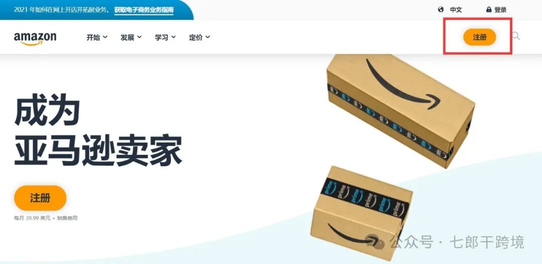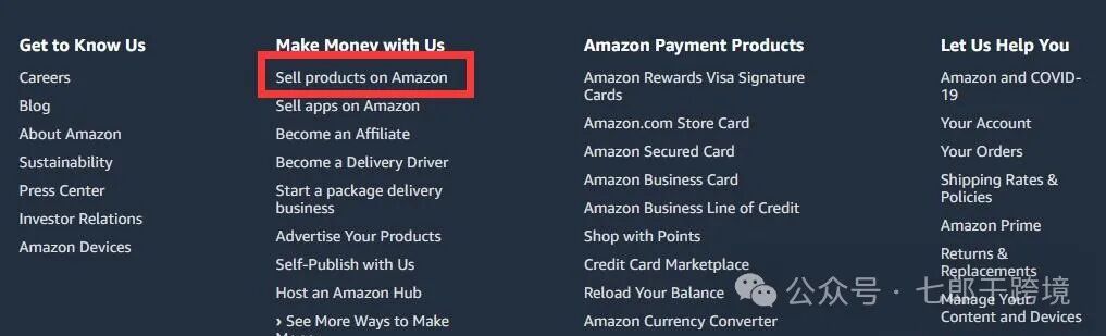 直接官网注册开店。在浏览器输入Amazon.com 可以来到亚马逊美国站前台,一直拉到底部,就会看到一个 sell products on amazon 的按钮。