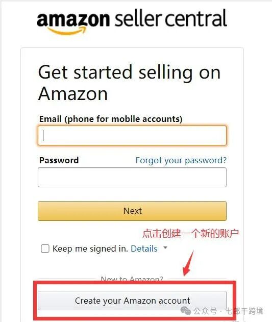点击注册以后,我们会看下以下界面,直接点击“create your amazon account"即可