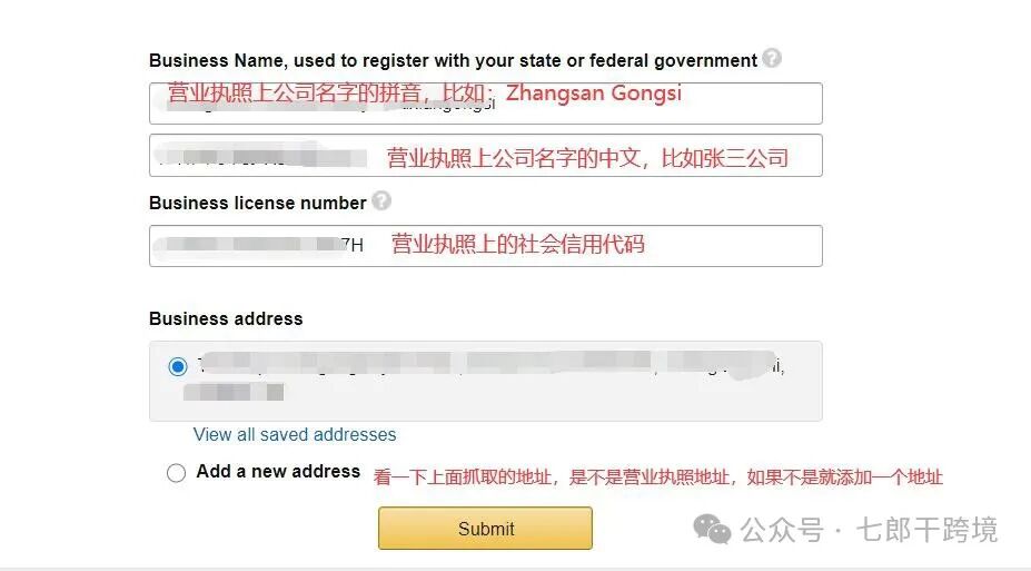 链接填写是最关键一环,第一第二都是资料简单收集而已。这一步是真正向亚马逊平台注册开店的资料,务求准确。