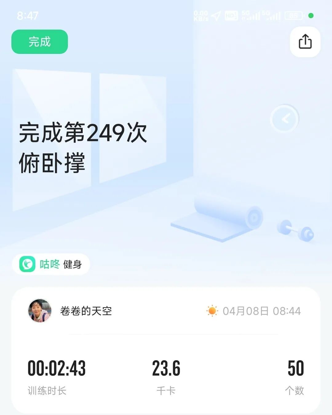 手臂和胸部肌肉微微酸痛,这正说明我的发力方式是正确的。