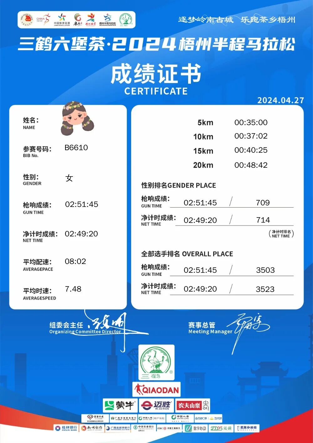 这次半程马拉松比赛给我最大的体验是,原来我根本就是一个很优秀的人,自信又上升一个层次。