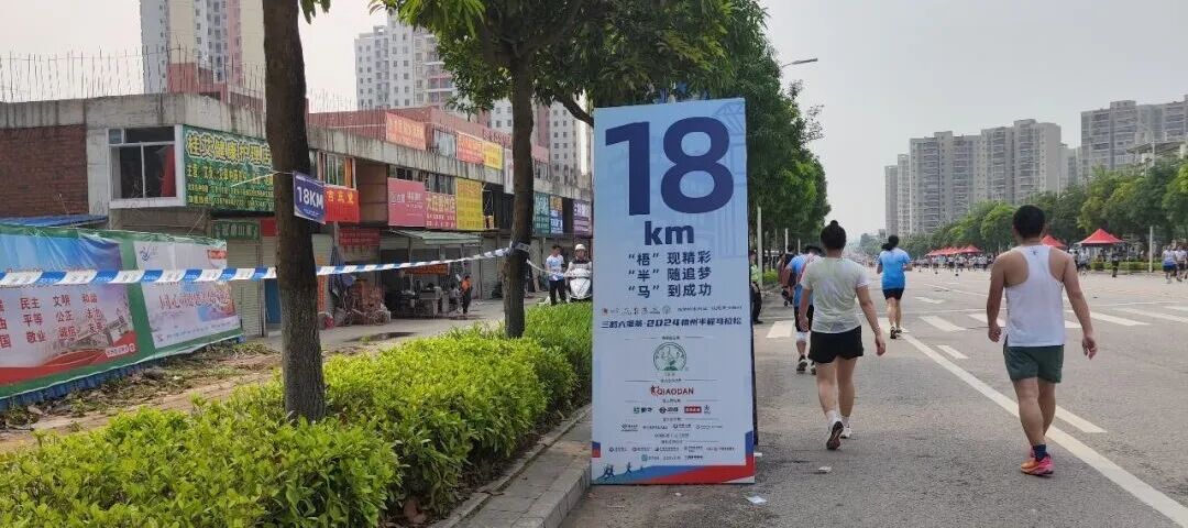 我看到18公里的路牌了,离终点还有3公里,离终点更近了。