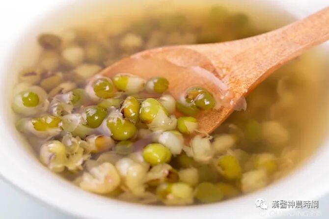 绿豆的清热之力在皮,所以说为了清热,煮绿豆汤时不要久煮。这样熬出来的绿豆汤颜色碧绿,比较清澈。喝的时候也没必要把豆子一起吃进去,就可以达到很好的清热功效。