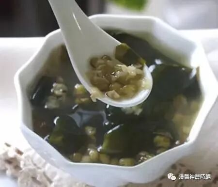 海带味咸、性寒,具有化痰、软化、清热降血压的作用。海带营养丰富,是一种富含碘、钙、铜、锡等多种微量元素的海藻类食物,可保护上皮细胞免受氧化。绿豆味甘,性寒,有清热解毒、消暑、利尿作用。常喝海带绿豆汤可清热解毒、凉血清肺、疗疮除痘。忌食,有胃寒者忌食。