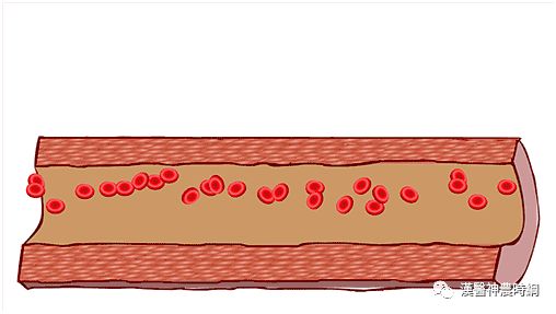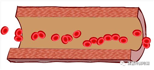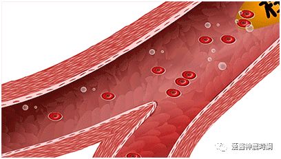 图中逐渐出现在血管壁中的黄色物质就是动脉粥样硬化的沉积物。随着时间的推移它会逐渐越来越厚,慢慢的阻碍了血液的流通造成大脑部分缺血。