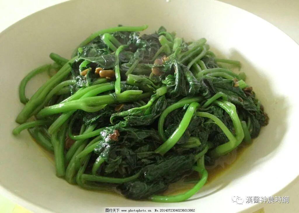 番薯叶中含有较高的铁质,以及维生素a,维生素c,维生素e等,可以有效的补充人体所需的血液,从而改善贫血的状况。番薯叶中富含丰富的钾,可以有效的控制血压,而且番薯叶中富含丰富的膳食纤维,可促进肠胃蠕动,增进新陈代谢,从而预防便秘和痔疮。而且番薯叶中含有较多的植物醇,可以促进荷尔蒙的分泌,有效帮助改善更年期的症状。