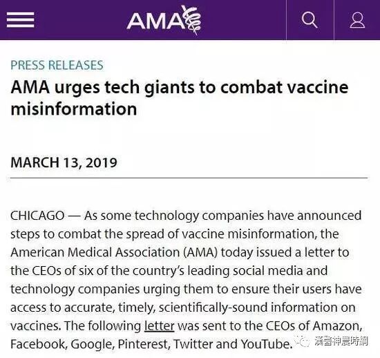 这封信的内容,是向亚马逊、Facebook、谷歌、Pinterest、Twitter和YouTube等企业的首席执行官求助,要他们帮忙阻断错误信息的传播,制止国内一场风起云涌的运动——“反疫苗”,称这场运动已经使得部分疾病在美国大幅上升,并对公共健康构成威胁。这是杞人忧天或者小题大做吗?