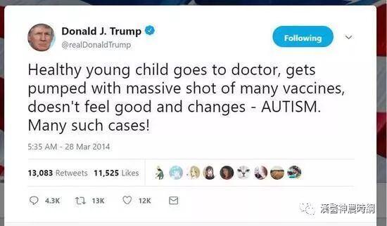 (图为美国总统特朗普在社交媒体上公开支持反疫苗运动)