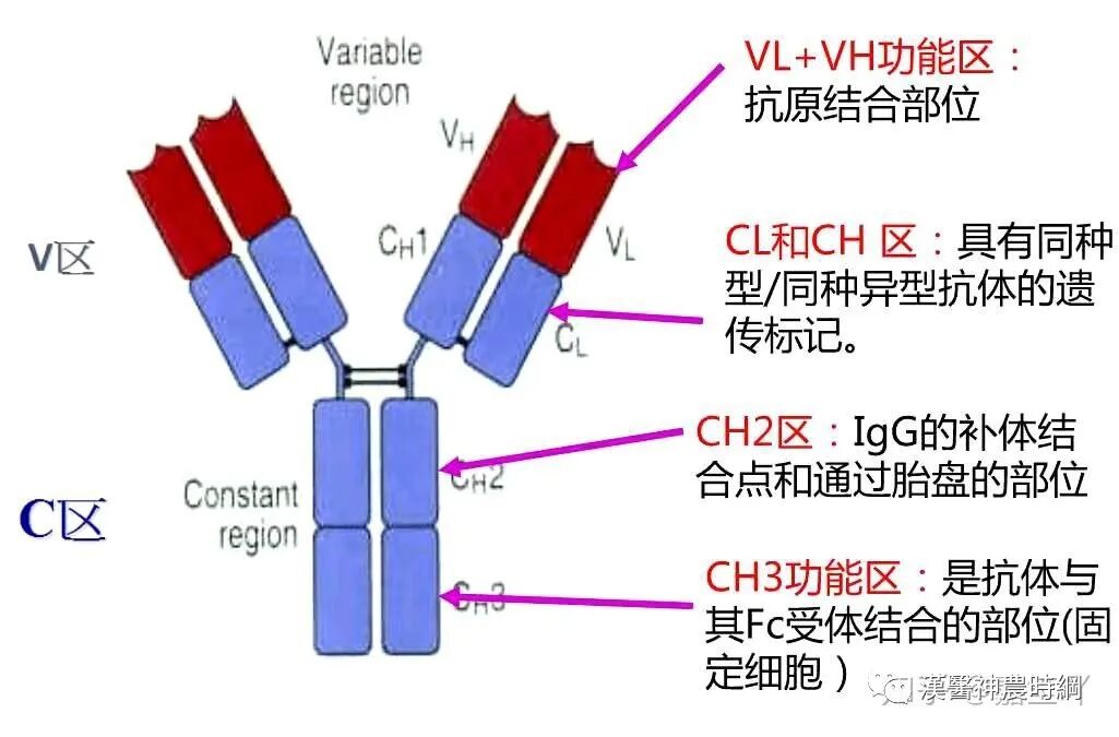 轻链与重链之间通过二硫键(—S—S—)相连接。免疫球蛋白是机体受抗原(如病原体)刺激后产生的,其主要作用是与抗原起免疫反应,生成抗原-抗体复合物,从而阻断病原体对机体的危害,使病原体失去致病作用。另一方面,免疫球蛋白有时也有致病作用。在慢性乙肝患者,长期白、球比例倒置,警惕有肝硬化迹象。
