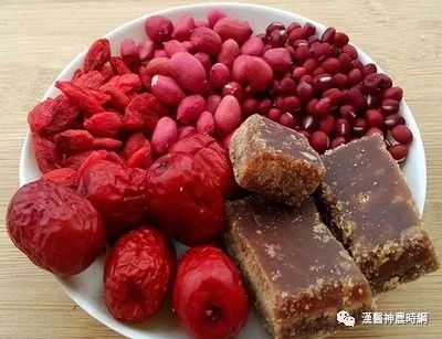 取花生红衣15克、首乌20克与红枣10枚同放入锅内,小火煎煮约半小时,加入适量红糖即成。每日饮3次,饮汤食枣。此方有养血补血之效,适于身体虚弱者。